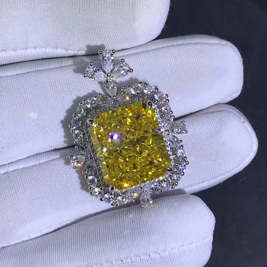 正方形のレディーンはピンクの黄色の高炭素のドリルのペンダントの3カラットの高級な豪華な純銀の女性の装飾を切ります。