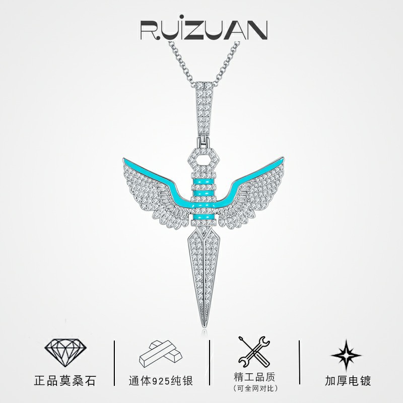 赤い本の人気s925銀莫桑石天使の翼1カラットinsネット赤経典莫桑ドリルネックレス