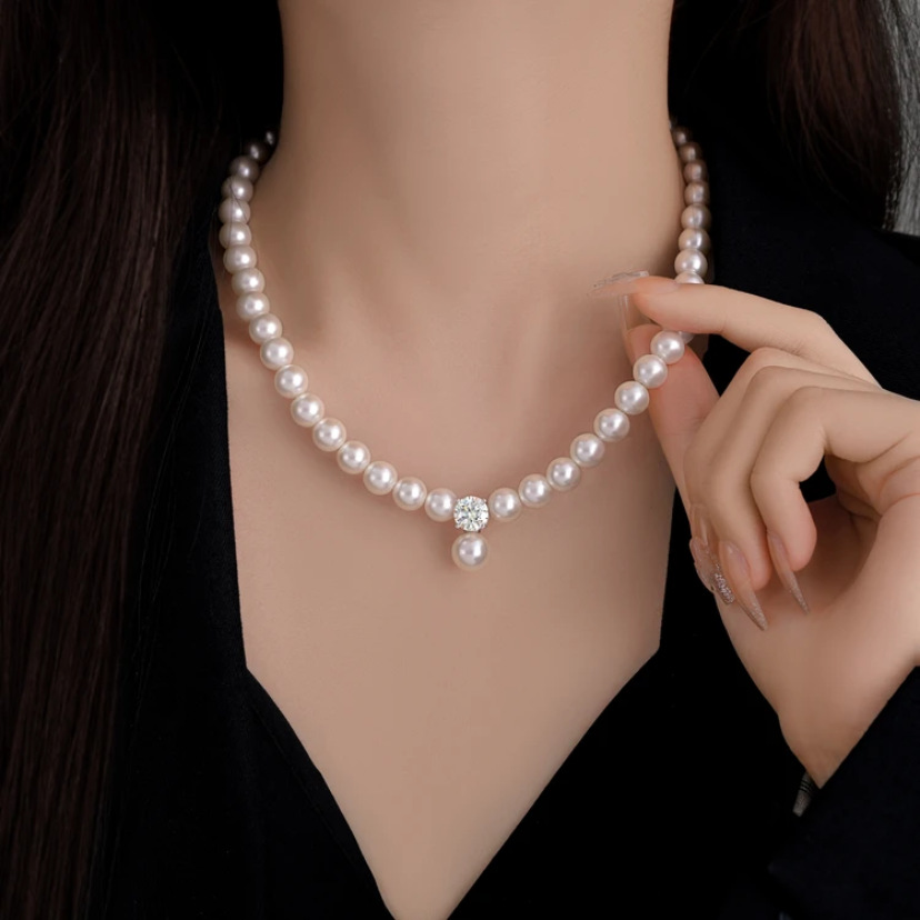 925銀莫桑石8mm真珠ネックレスシンプルファッション気質優雅貝珠ペンダント母に誕生日プレゼント
