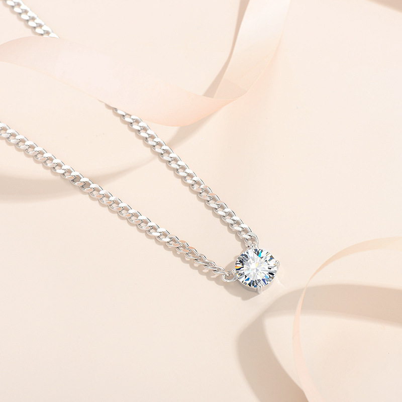 S925純銀ネックレス女莫桑ドリルネックレス莫桑石ペンダントプラチナ鎖骨鎖恋人プレゼント