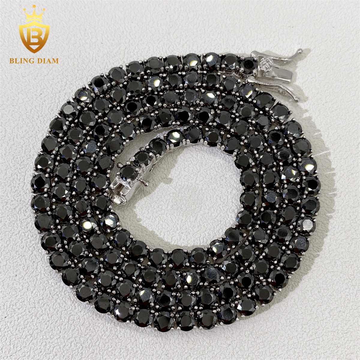 莫桑黒3/4mm925銀ヒップホップ一列テニスチェーンネックレスブレスレットtennis chain欧米