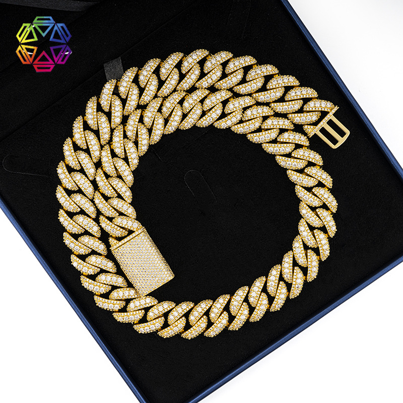 欧米hiphopヒップホップパンク風20mmキューバチェーンs925銀満ドリル莫桑石ジュエリーキューバネックレス