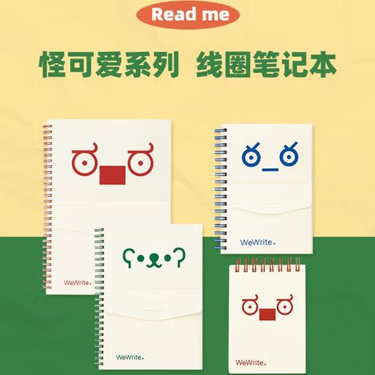 Fumeigao ノートブック エクスプレッション ウィルド キュート シリーズ ダブルコイル メモ帳 横線付き フロントバッグ付き 学生文具
