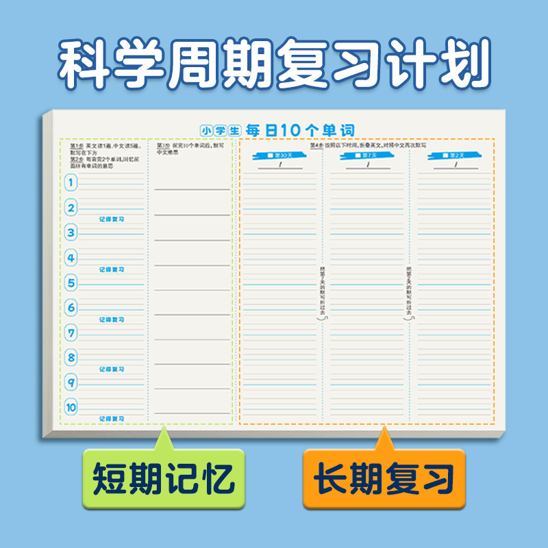 小学校の英語の毎日の10の単語の艾賓浩斯の記憶の曲線は黙認して紙の小学校の中学校の単語の速記の本を書きます。