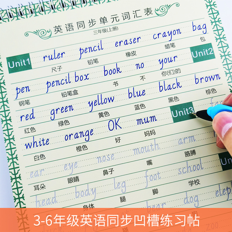 小学生3-6年生上巻下巻英語教科書同期溝練習字帖外国語ペン字帖斜体