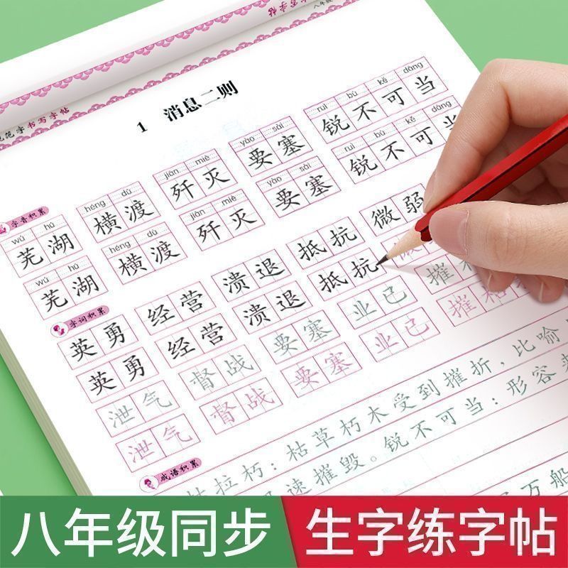 8年生用コピーブック 上下巻 人民教育版 同期中国語練習コピーブック 中学生用楷書ペンコピーブック