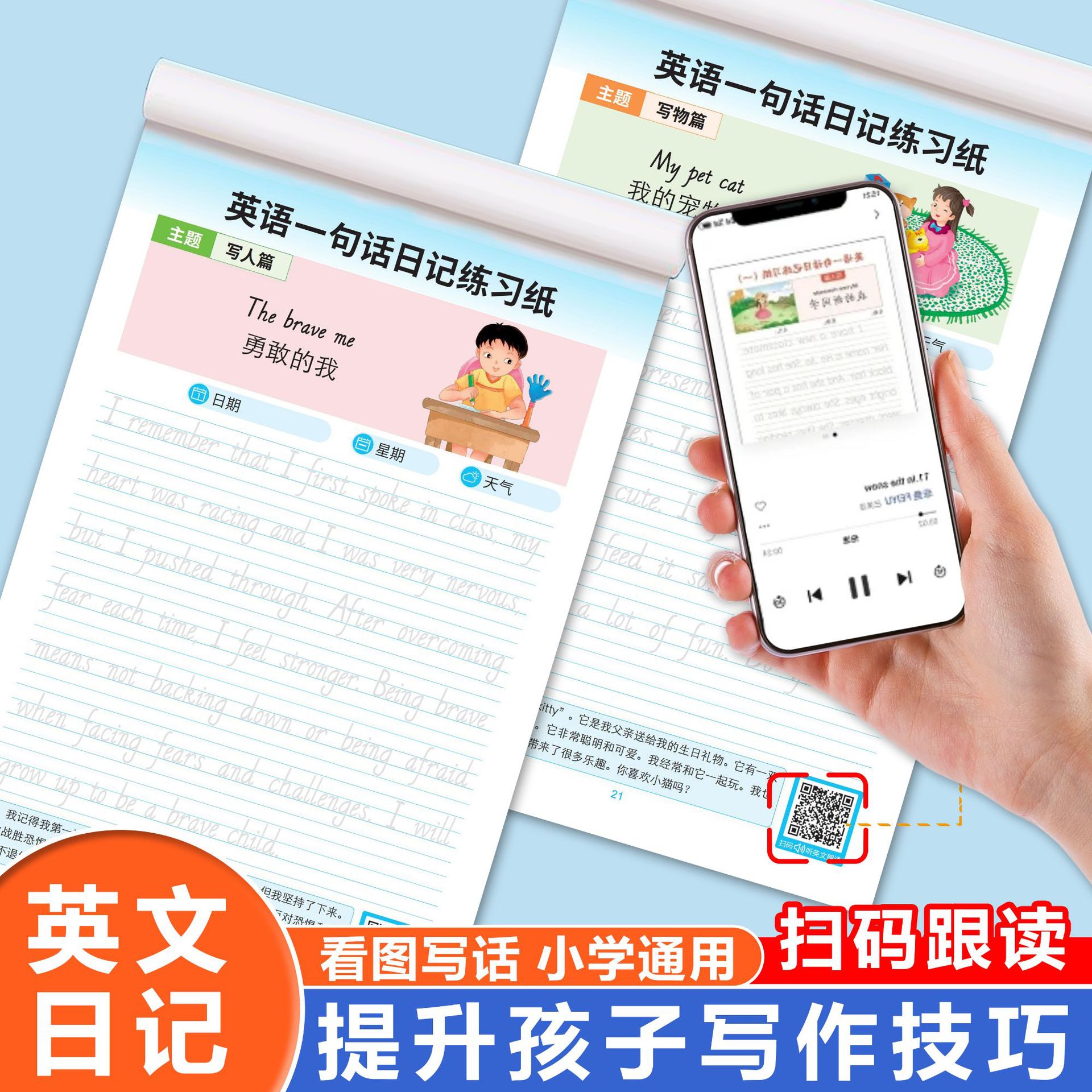 小学生向け英語ワンセンスダイアリー練習用コピーブック、一般英作文練習用コピーブック、毎日の練習用コピーペーパー