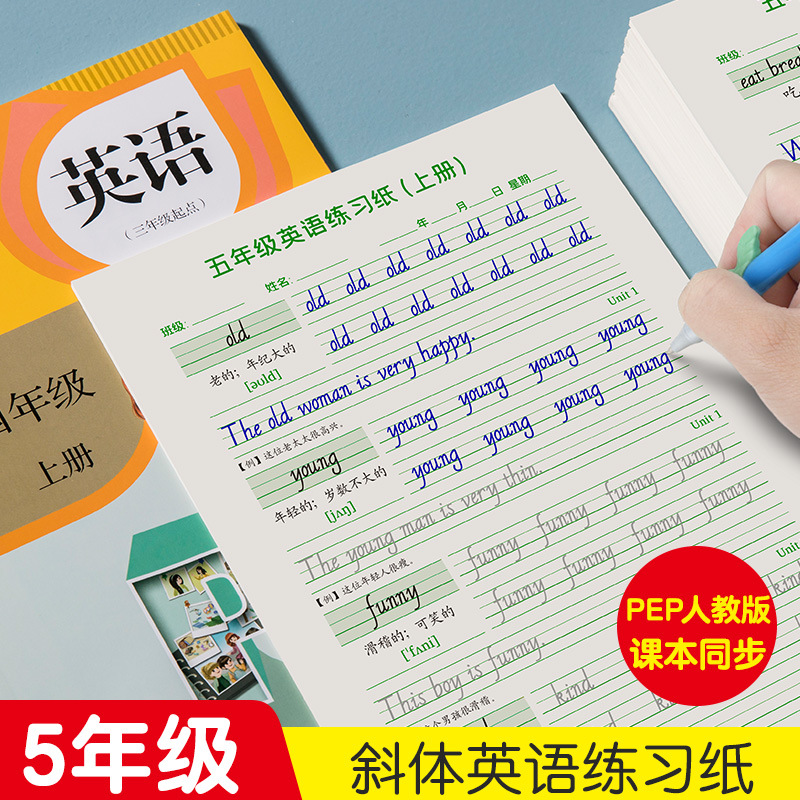 小学校5年生斜体英語練習字帖上巻下巻人教版教科書ユニット語彙同期練習紙