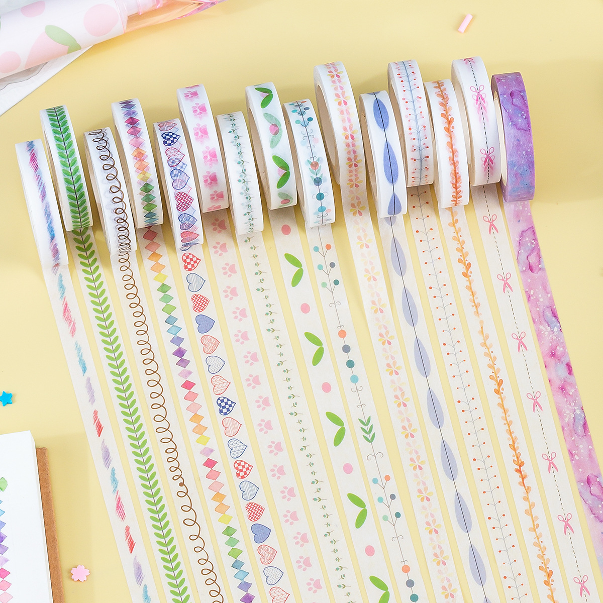 15種類の和紙テープ(0.8cm)DIY手帳用クリエイティブ分割線細型和紙テープ(剥がせる)