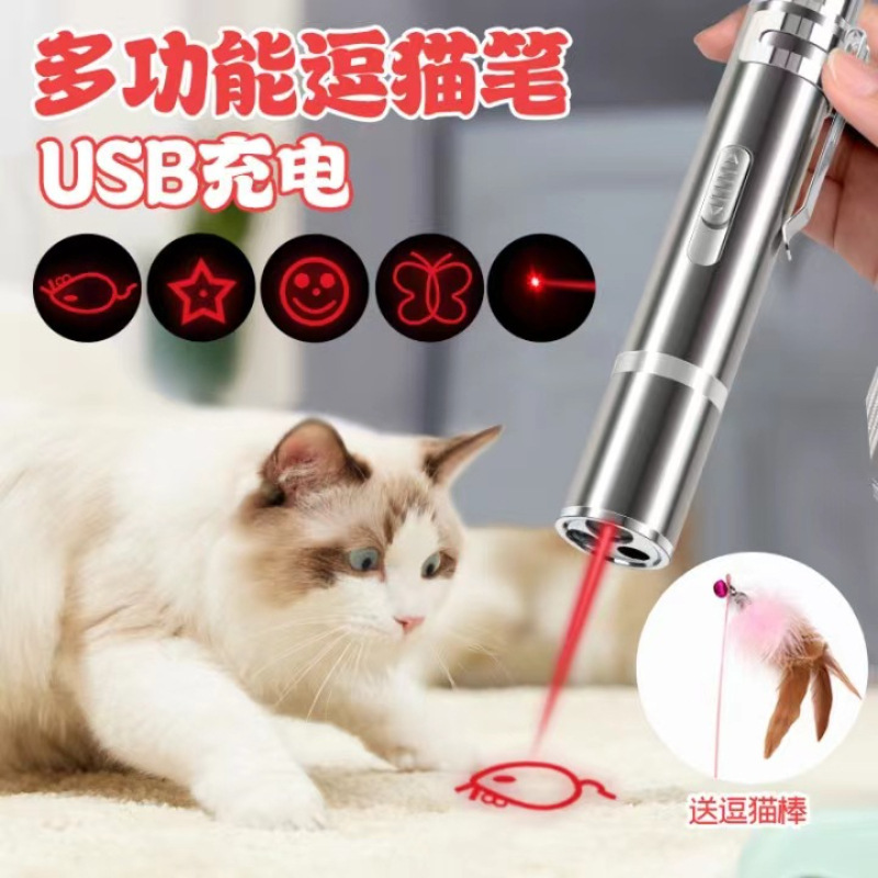 温数一ペットレーザーペン携帯USB充電多機能パターン猫棒自ハイ退屈猫玩具