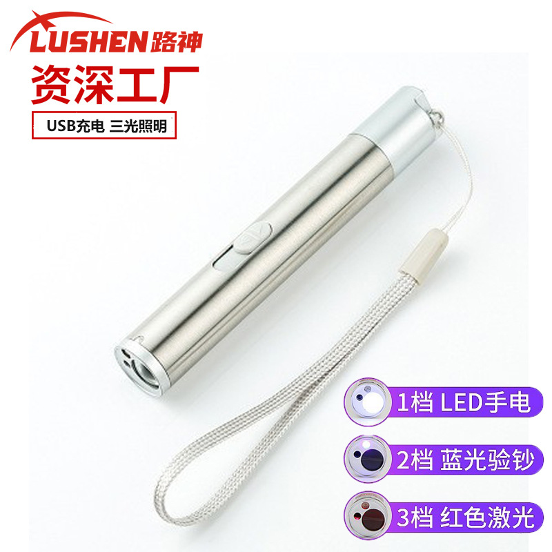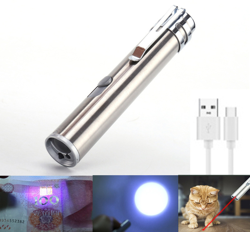 Ledミニ強光懐中電灯usb充電赤外線逗猫棒レーザーペン紫光紙幣検査ペン照明懐中電灯