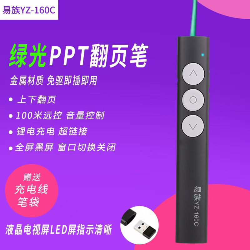 易族YZ-160C緑光充電液晶パネルledスクリーン指示pptページめくりペン投影ペン電子鞭