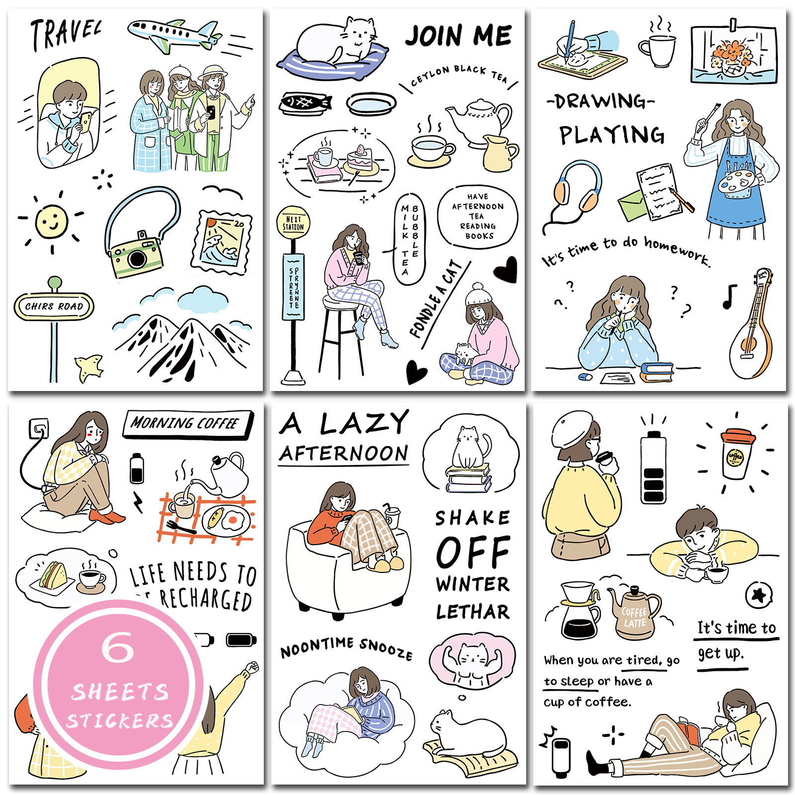 6枚入切膜シール高颜値手帐コラージュ人物素材贴り手帐携帯ケースdiyクリエイティブデコレーション