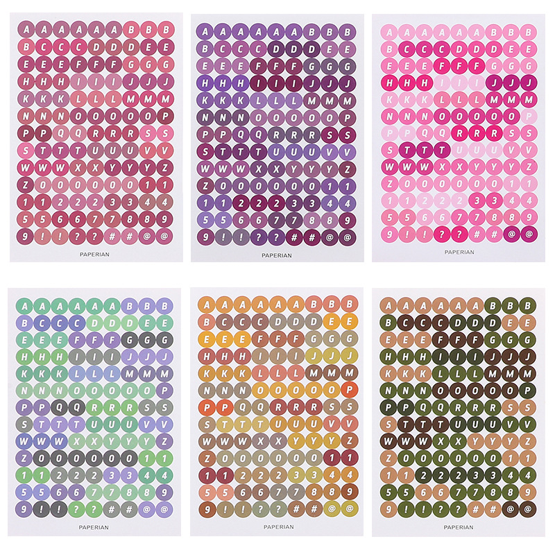 韓国 Guka カラフルなラウンド英語英数字ハンドブックステッカー Guka ステッカーハンドブック素材文具ステッカー