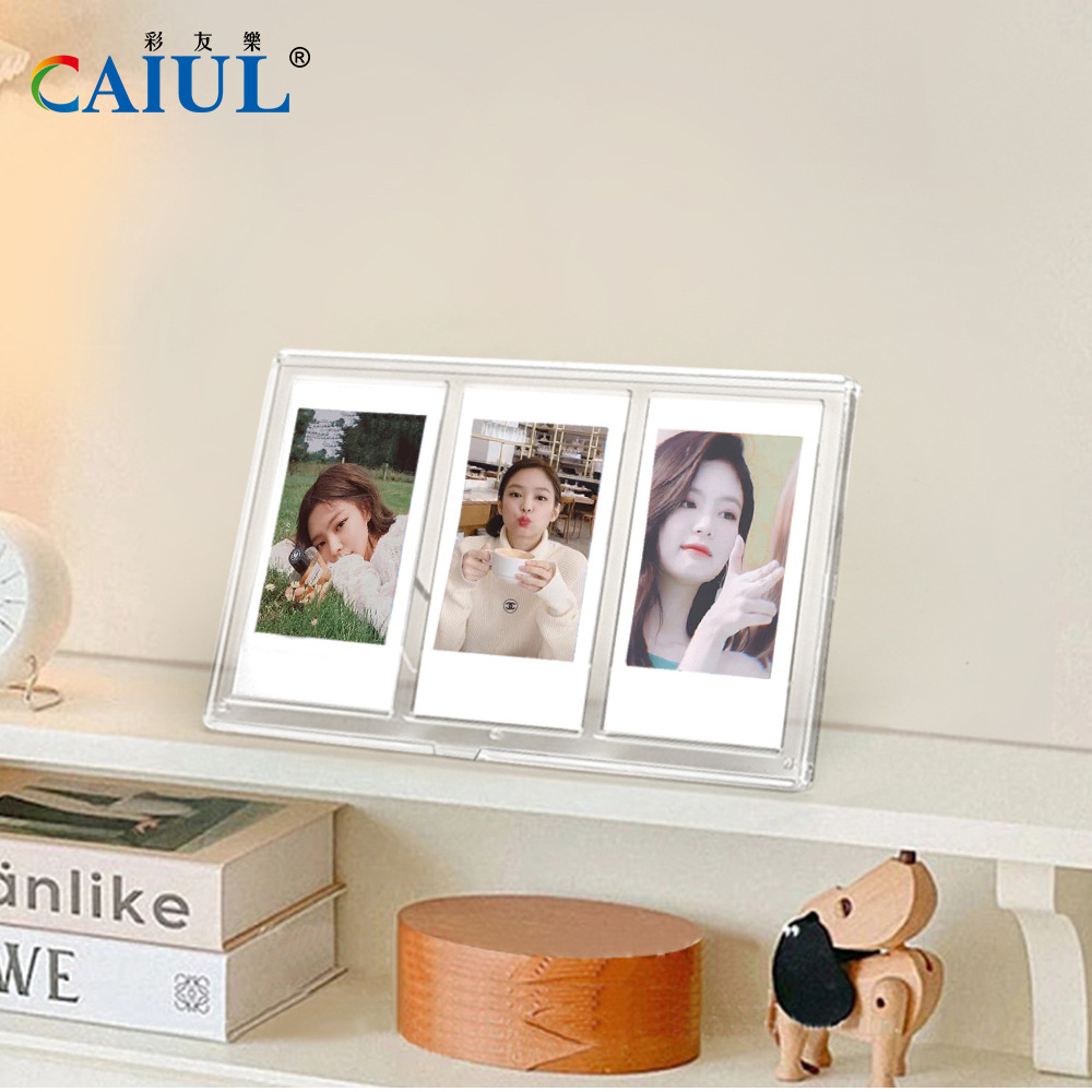 ミニ3インチpc透明フォトフレーム卸売りシンプルなアイデア縦型三宮格フォトフレームを適用して台を置く