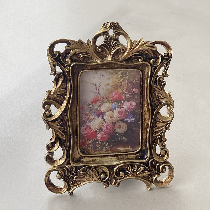 ヨーロッパのレトロな金色の樹脂の小さいフォトフレームは壁の写真の壁の創意の芸術を掛けます。