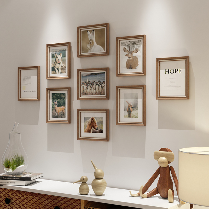 木の写真の壁は穴を開けないで、写真の壁のフレームの壁の会社の文化の壁の背景の壁面の装飾の枠は壁の組み合わせを掛けます。