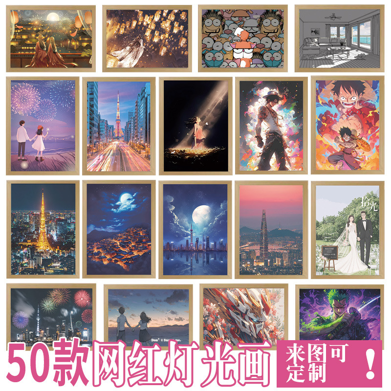 三色抖音で話題のアニメライトペインティング、リビングルーム用発光フォトフレーム、ベッドサイドUV写真フレーム、クリエイティブDIYメーカー