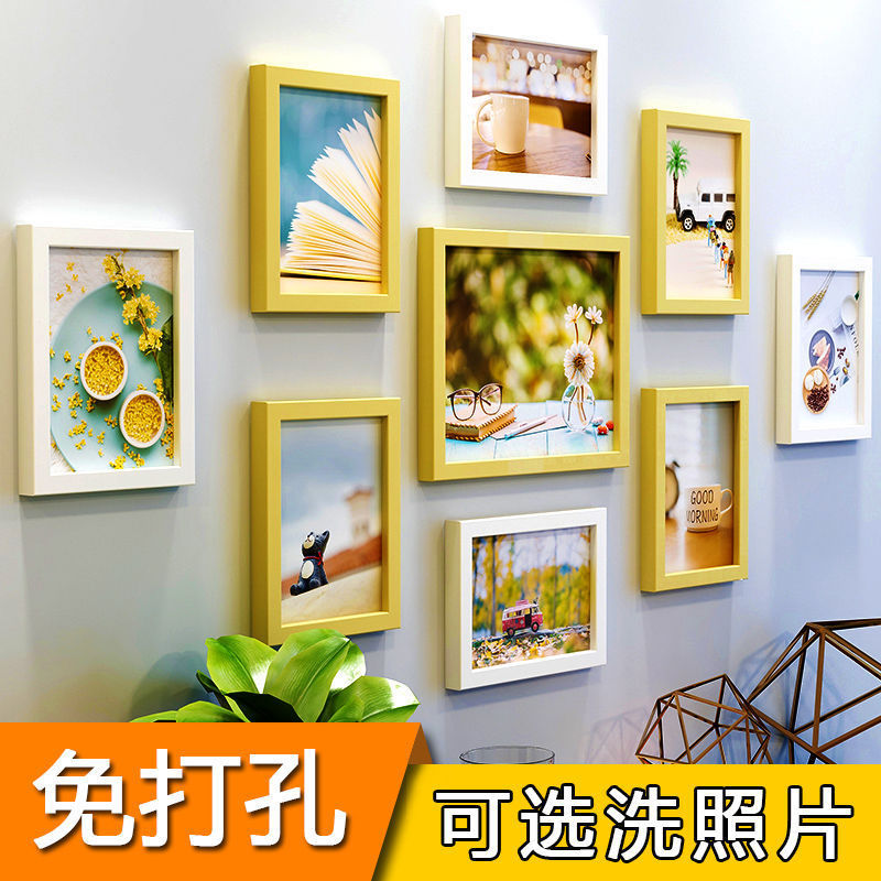 シンプルな写真の壁の装飾のフォトフレームの組み合わせは壁を掛けて穴を開けないで写真を洗います。