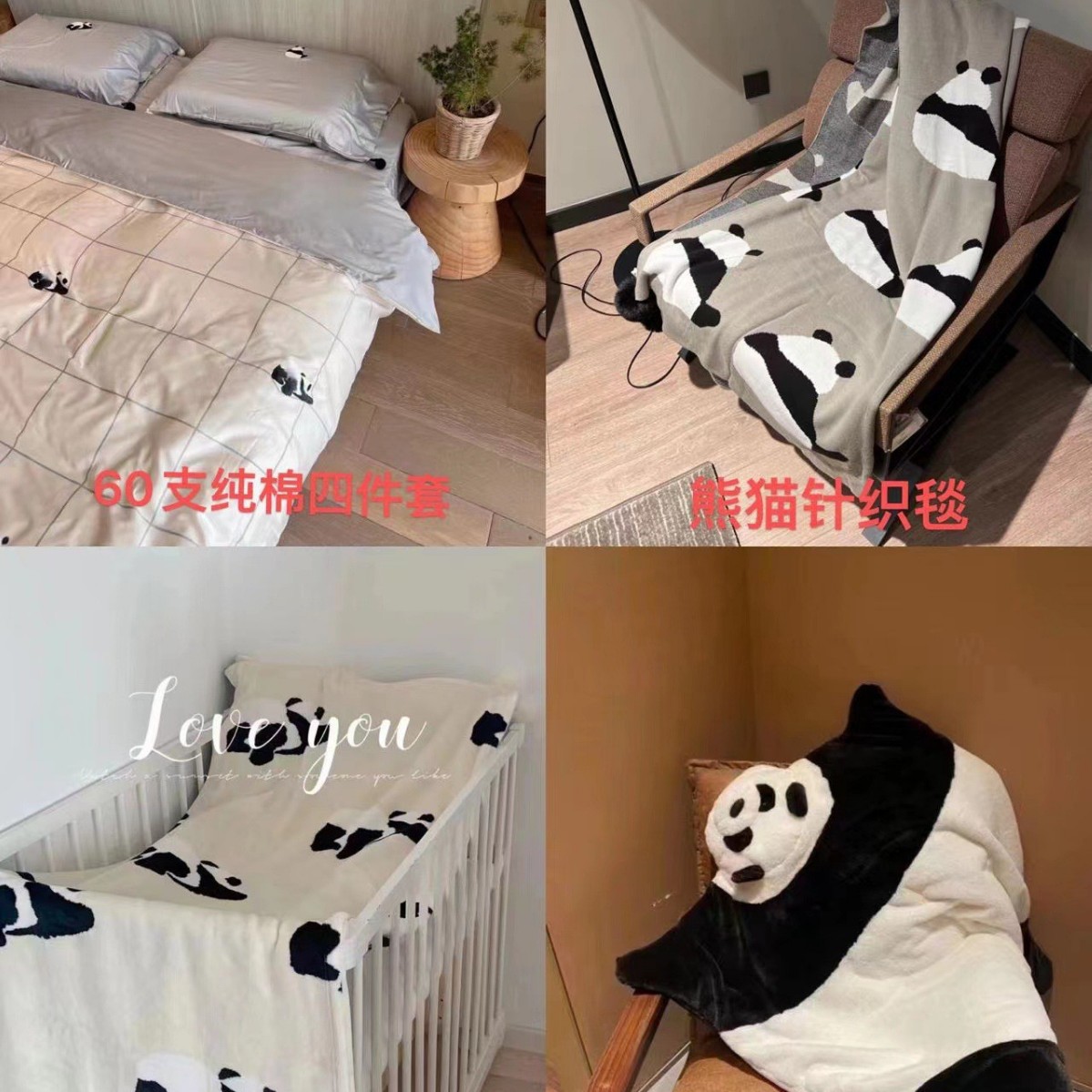 パンダ綿60本4点セット/フランネル毛布/ニット毛布リンク/パンダの毛布