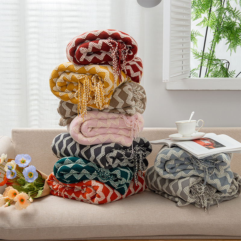 C14酸性アルカリ波状ニットブランケット、インスタ風糸ブランケット、民宿ホテルベッドサイドブランケット、ソファブランケット、四季通用レジャーブランケット