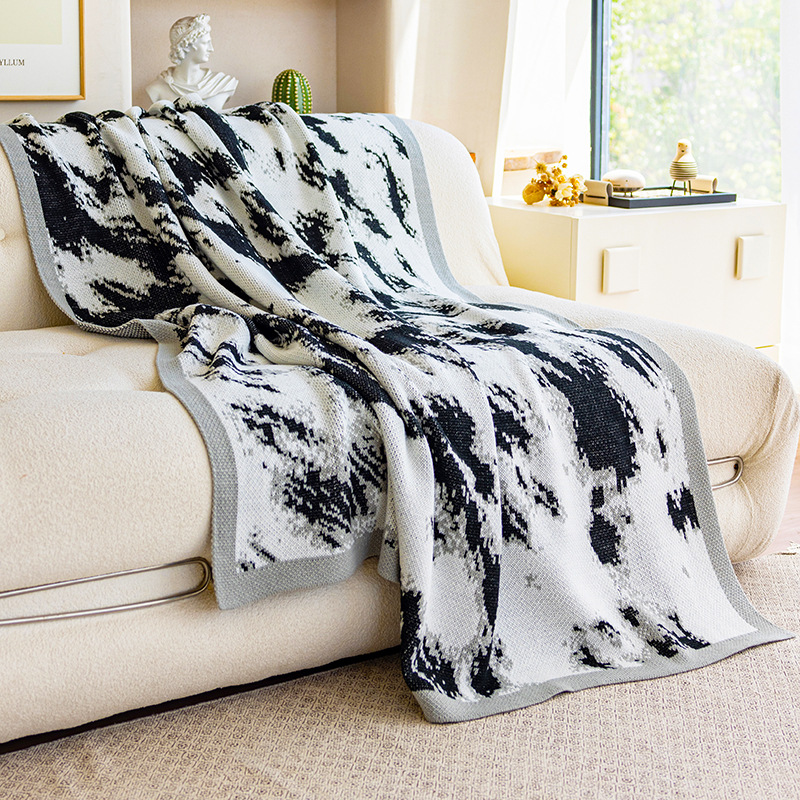 北欧insオフィス昼休みエアコンブランケットカジュアルニット白黒落書きリビングシングルソファーブランケット四季用
