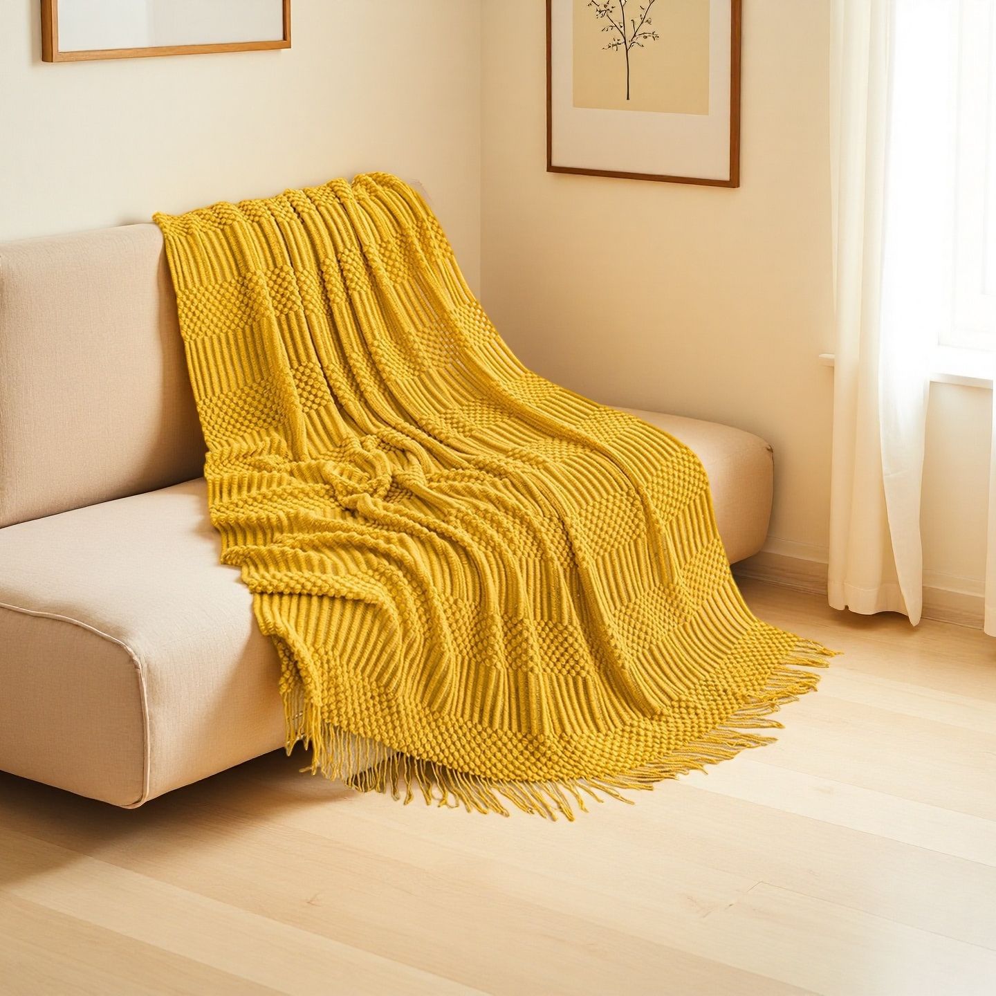 C12大型無地糸毛布ニットブランケット、エクストラロングタッセル付き、民宿ベッド用ブランケット、夏用エアコンブランケット、毛布