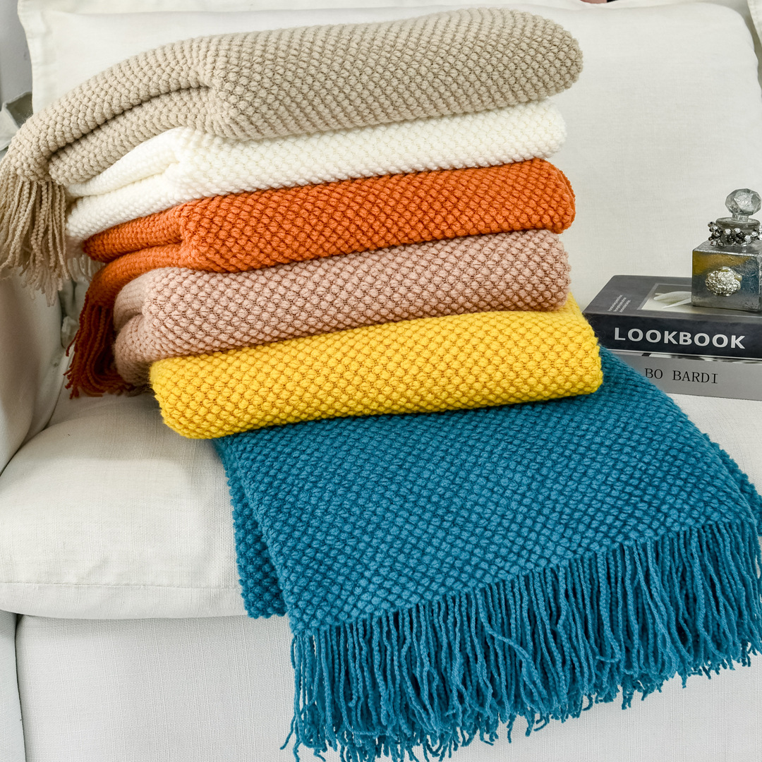 C11コーン粒柄カジュアルブランケット無地ニットブランケット民宿ホテルベッドサイドブランケットオフィスブランケット航空ブランケット