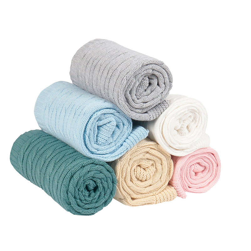 ニットブランケット、プロ仕様のカスタムカジュアルブランケット、ニット糸ブランケットの加工、無料サンプル、工場OEM、ODM