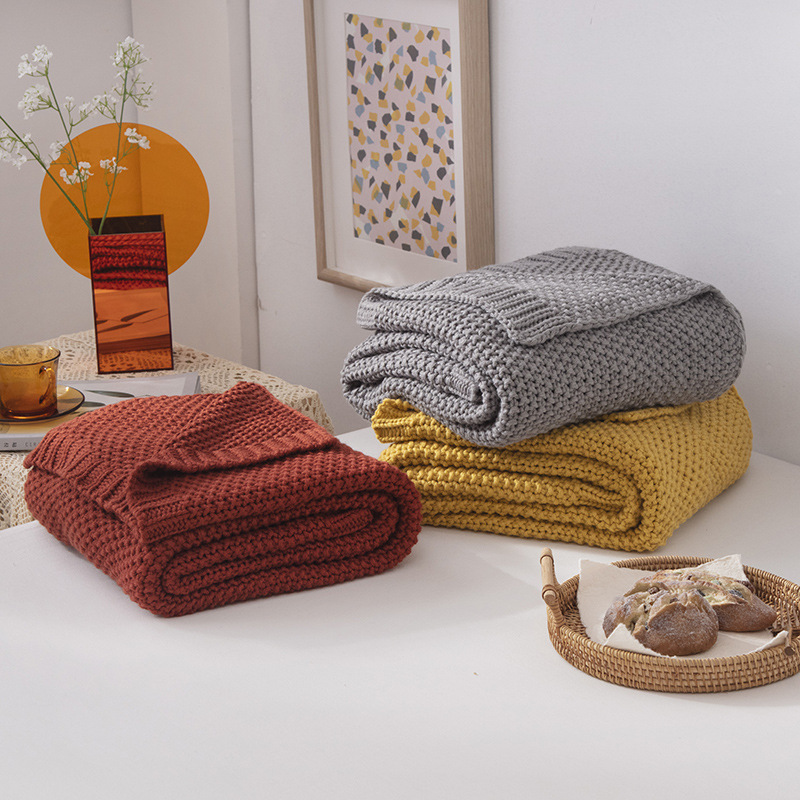北欧現代ニット毛布民宿ホテルのベッドの後ろに毛布を掛けて、毛布のサンプルの間にソファーの毛布を注文しました。