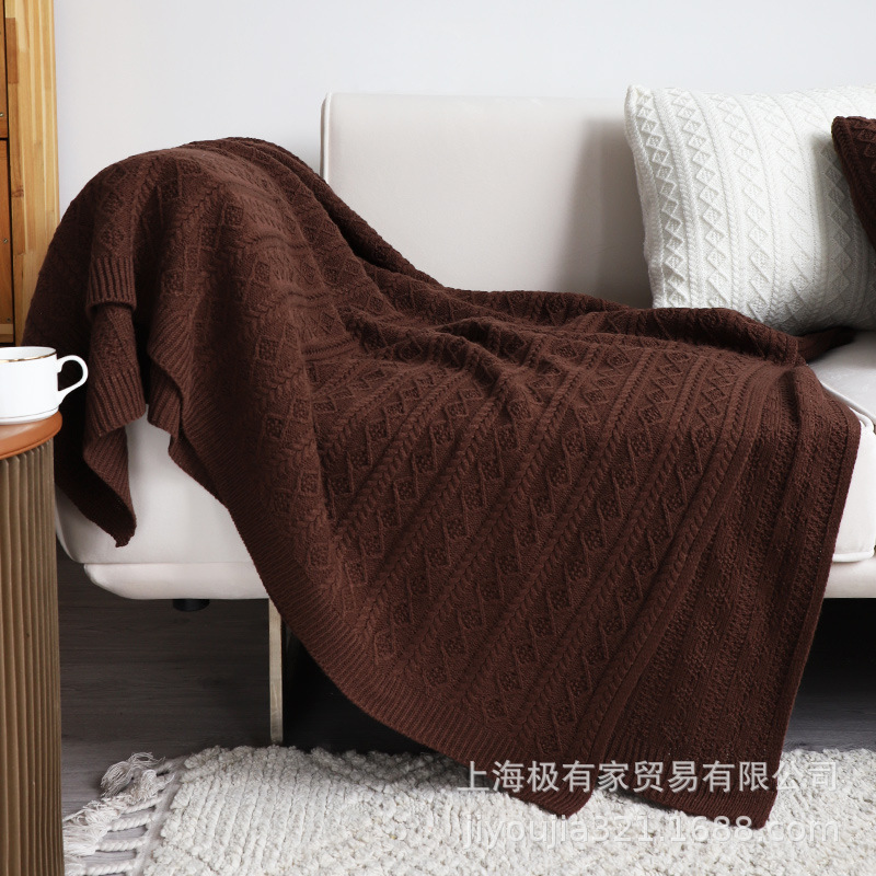 北欧風四季航空調ブランケットソファーブランケットレジャー装飾カバーキャラメル色ニット毛糸昼寝ブランケットカスタマイズ