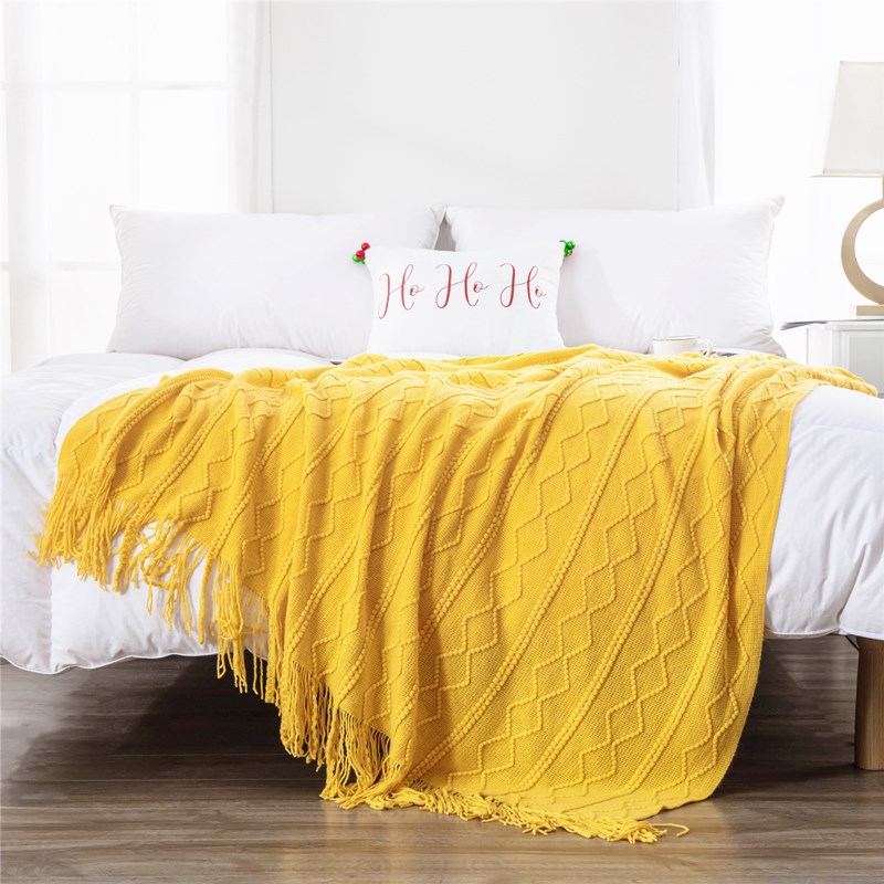 北欧の純色のフリンジブランケット民宿レジャーブランケットホテルのベッドにブランケットをかけます。