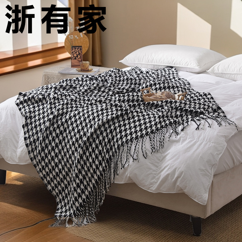 F4織り糸毛布 黒白クラシック千鳥格子柄毛布 ベッドサイド毛布 ソファカバー毛布 民宿専用毛布