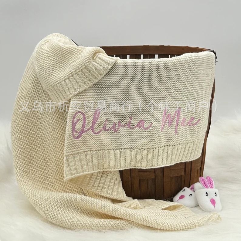 国境を越えてパーソナライズされた起爆刺繍ベビーカーの毛布はニット綿の昼寝毛布でソファー毛布ETSYになった