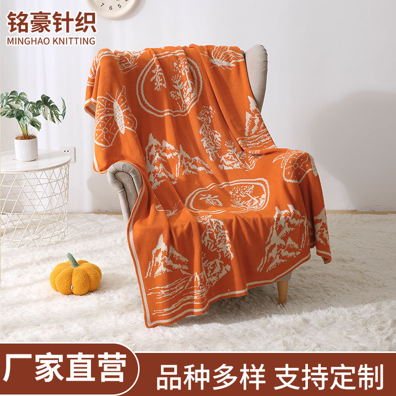 北欧風ニットブランケット森林植物花卉模様ニットカバーブランケット四季の厚いエアコンブランケットオフィスにブランケットをかける