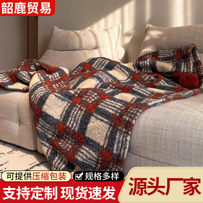 メーカーカスタマイズされたラムズウールニットブランケット秋と冬のウールブランケットベッドブランケットソファブランケット写真小道具