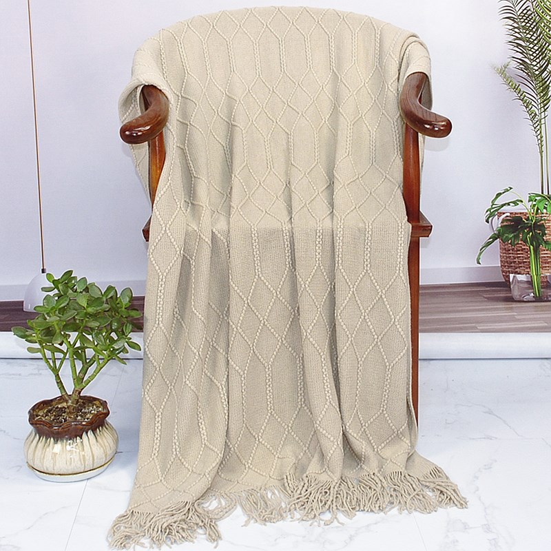 カスタムメイドの無地フリンジニットブランケット、リビングルームのソファブランケット、民宿のベッドエンドカバー、ベッドランナー、冬のオフィス昼寝用ブランケット