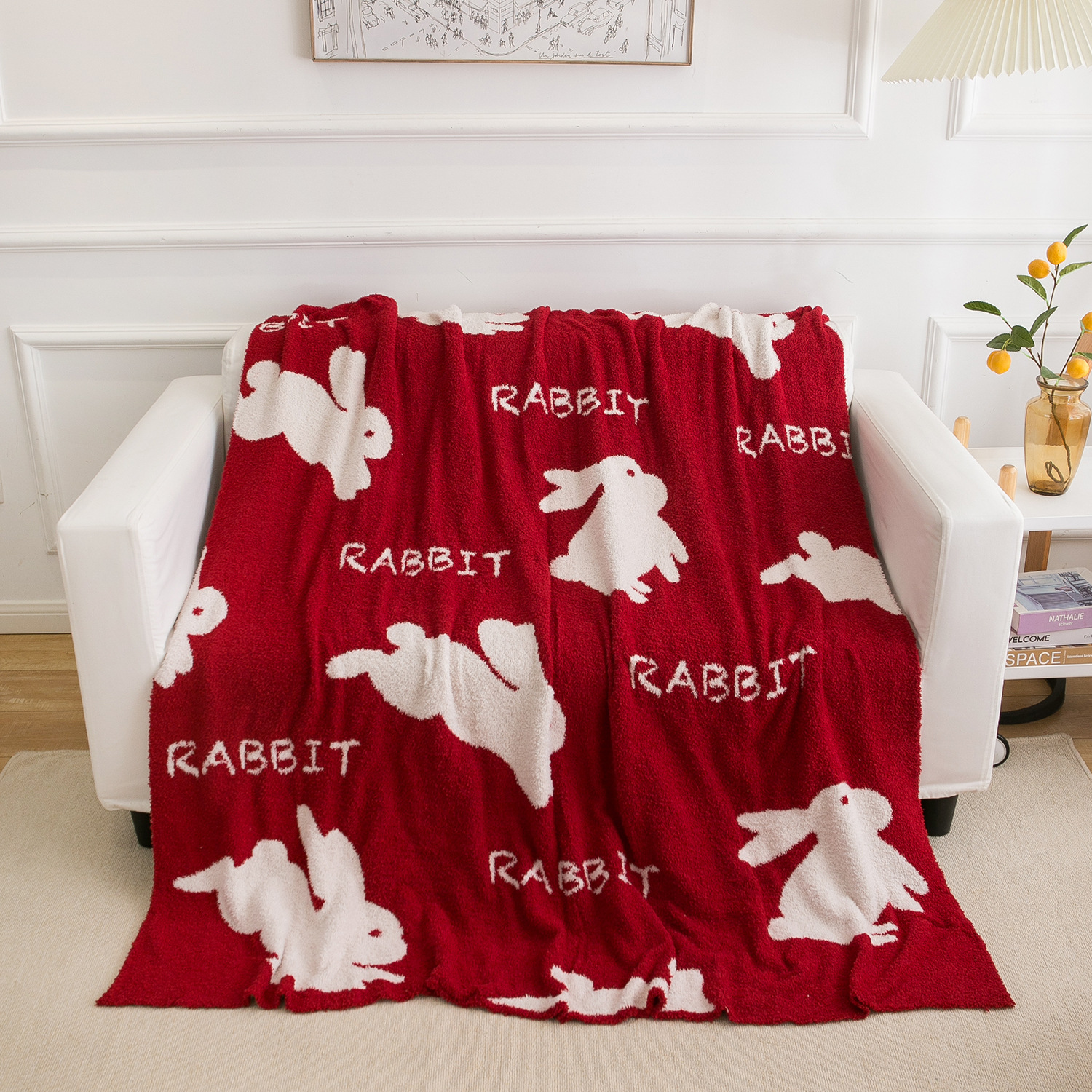 2022新型昼寝マントニット毛布が毛が落ちにくい毛布の両面に赤いウサギのソファー毛布
