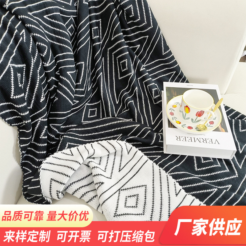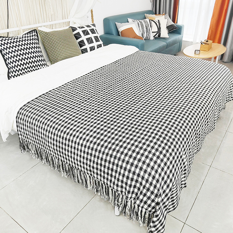 メーカー直販オフィス昼寝エアコンブランケット両面白黒格子ソファーカバーブランケット春秋綿メリヤス絨毯