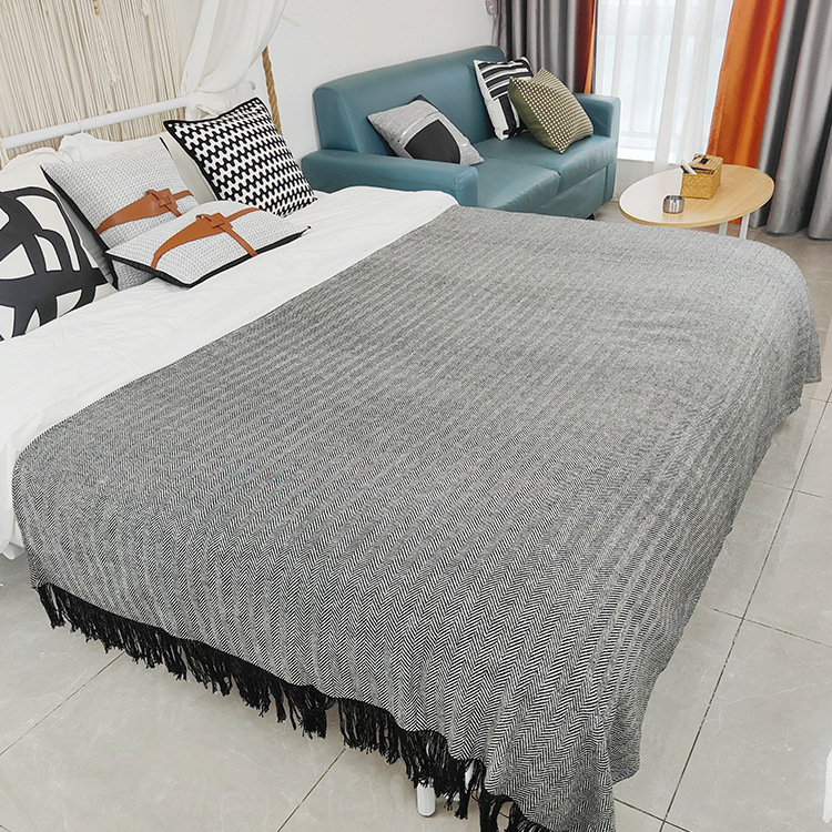 韓国インスタイル先染めジャカードタッセルニットソファブランケットオールシーズンタペストリーキャンプブランケットクロスボーダー外国貿易ブランケット