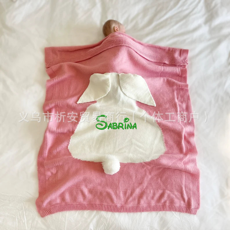 Etsy热い贩売パーソナライズ刺繍iNS风ウサギ耳ブランケット立体ウサギブランケット子供用ニットカバーブランケット宝