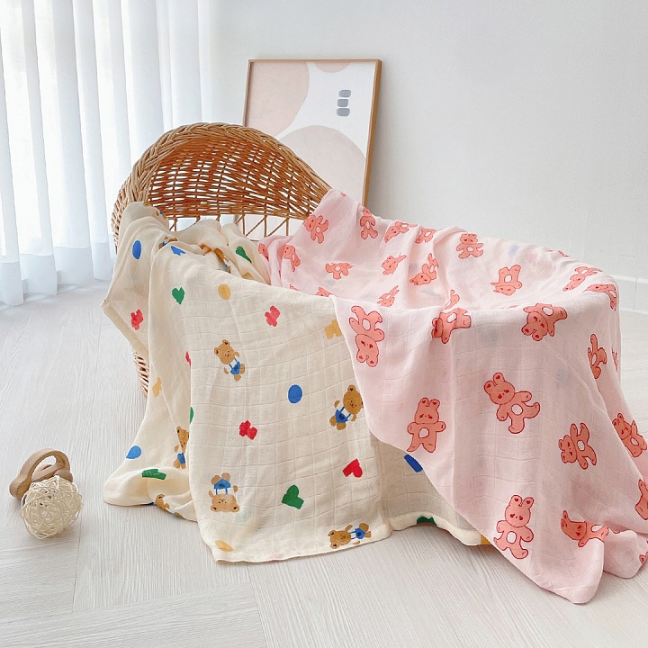 韓国式insベビー竹繊維絨毯子供綿通気糸エアコン絨毯薄い夏は新生児四季に包まれている
