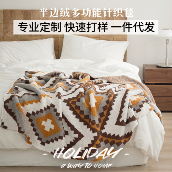 半端パイル慕山格ニットブランケット昼寝ブランケットソファーカバーブランケット