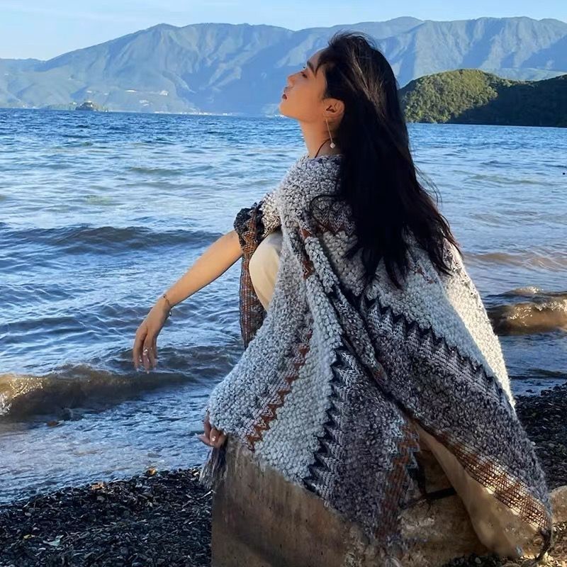 民族風のストールの外は大理麗江ストールのマントの両用のマフラーの女性雲南麗江青海原のマントを掛けます。