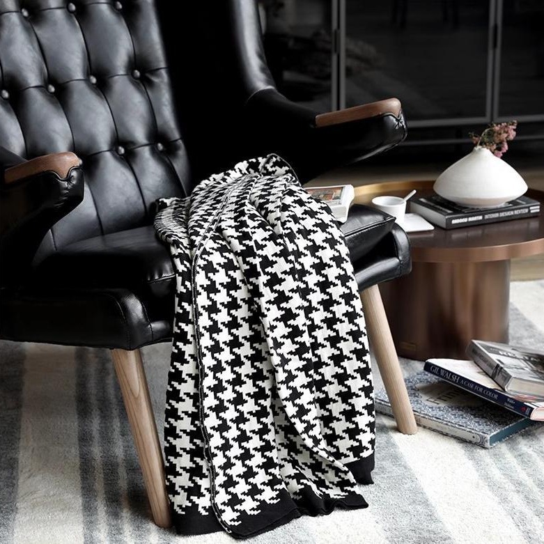 夏の薄い毛布ニット毛布オフィスソファー昼寝毛布シンプル白黒千鳥格ソファー毛布北欧風毛布