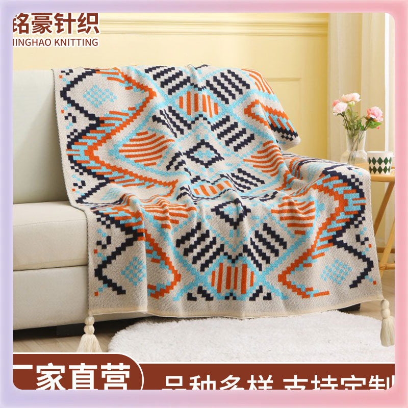 A26ニットブランケット、カジュアルな配色、多用途ソファカバー、民宿装飾ブランケット、ベッドエンドブランケット、毛布、北欧風