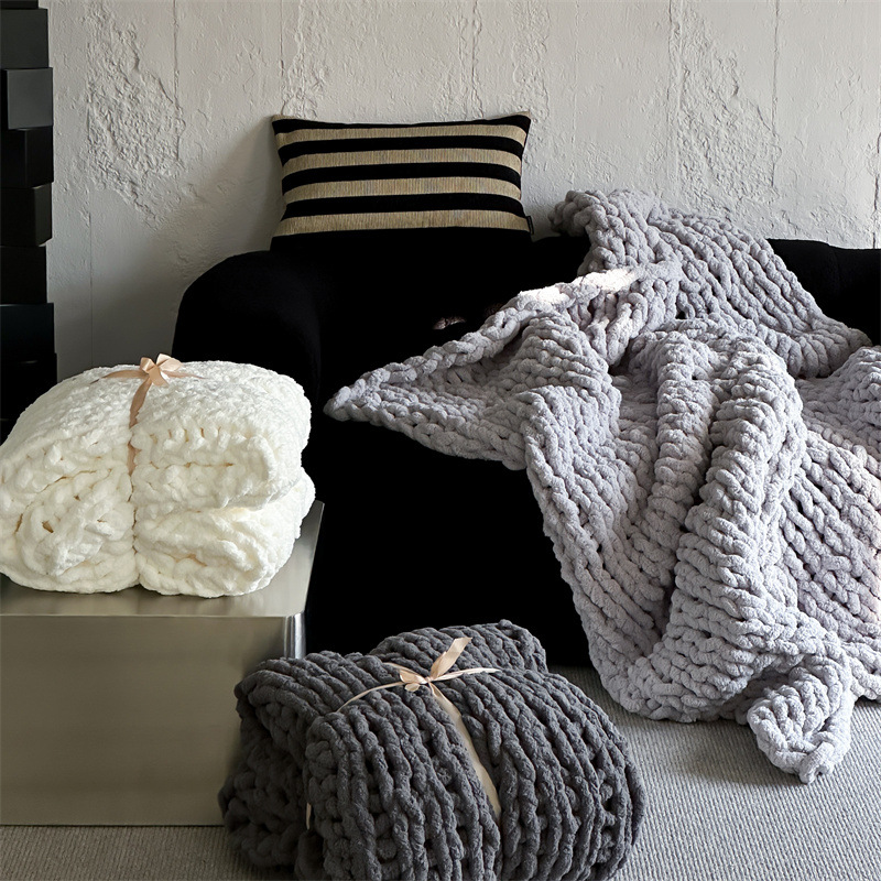 北欧クロスボーダー太い毛糸手織りブランケットニットカジュアルソファーブランケットオフィス昼寝ブランケットエアコンブランケット
