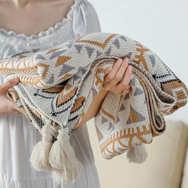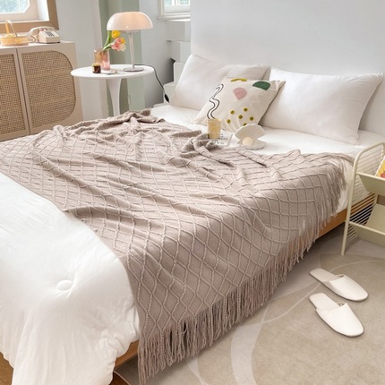 2023新品菱形格子ストライプフリンジ手作りニットブランケット