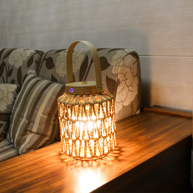 充電装飾電気スタンド手作り竹藤原木寝室ベッドヘッドランプ茶室民宿レトロ禅意手提げ式2023