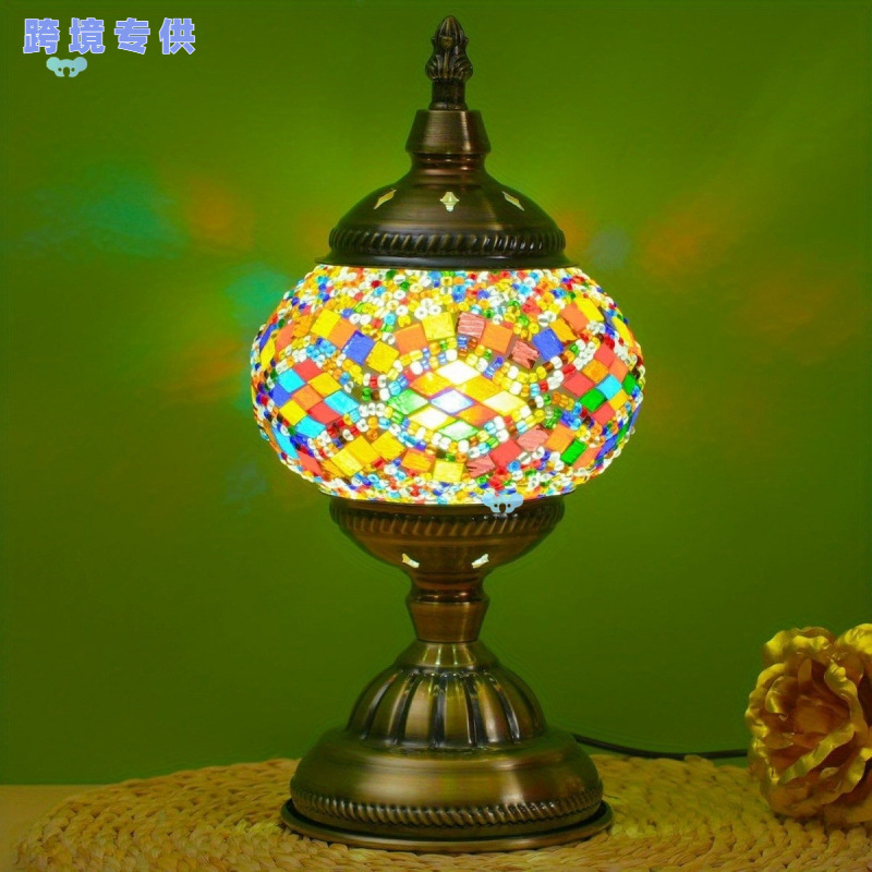 3 色調整可能な手作りモロッコモザイクテーブルランプクロスボーダー